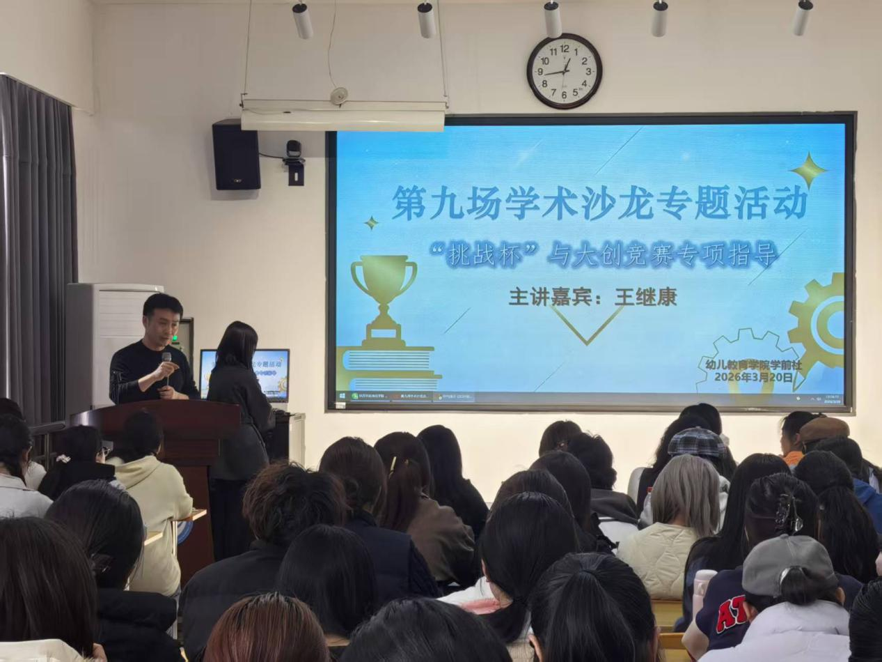 为帮助学生深入了解“挑战杯”和大创竞赛的相关知识,提升竞赛综合能力,幼儿教育学院于2026年3月20日下午13:00成功举办了第九场“学术沙龙”活动。本次活动由幼儿教育学院学前社和团总支联合承办,幼儿教育学院党委副书记王继康老师担任主讲嘉宾,各年级学生代表参与了此次学术交流。