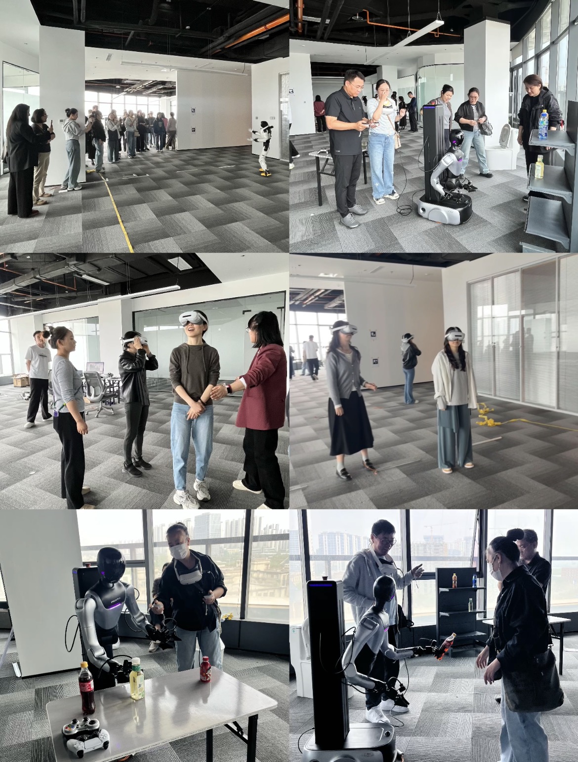 随后,教师团队沉浸式体验了智能机器人与VR虚拟仿真项目。在智能机器人体验区,教师们详细了解了机器人的基本功能与操作方法;在VR虚拟仿真体验区,大家通过亲身参与虚拟场景互动,直观感受了前沿技术在教育教学中的实际应用。