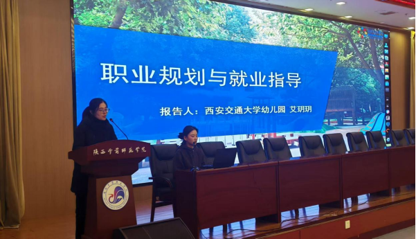 2025年12月17日,陕西学前师范学院幼儿教育学院校友讲堂在图书馆东侧报告厅召开。本次讲座聚焦专业成长与职业发展,以“从学前新苗到幼教骨干:成长路径与行业前瞻”为主题,特邀西安交通大学幼儿园优秀校友艾玥玥回校分享,幼儿教育学院党委副书记苏群、职业生涯规划课教师白雪祺、2024级学前教育本科全体同学参与。