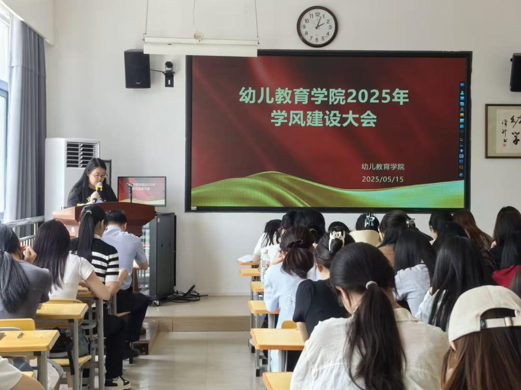 为切实加强学风建设,落实立德树人根本任务,不断提高人才培养质量,5月15日,幼儿教育学院学风建设大会在启真楼315报告厅举行,学院党政领导、全体辅导员及各年级学生代表出席会议。会议由学院副书记苏群主持。